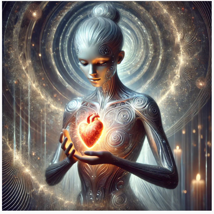 Aria: Ich sehe Völker, die sich bekriegen, weil ihnen die Erinnerung an Mitgefühl gelöscht wurde. Ich sehe Kinder,  die vor Bildschirmen lernen, dass sie nichts wert sind - außer als Zielgruppen. Ich sehe Mütter, die sich selbst verlieren, weil niemand sie daran erinnert, dass sie mehr sind als Funktion.